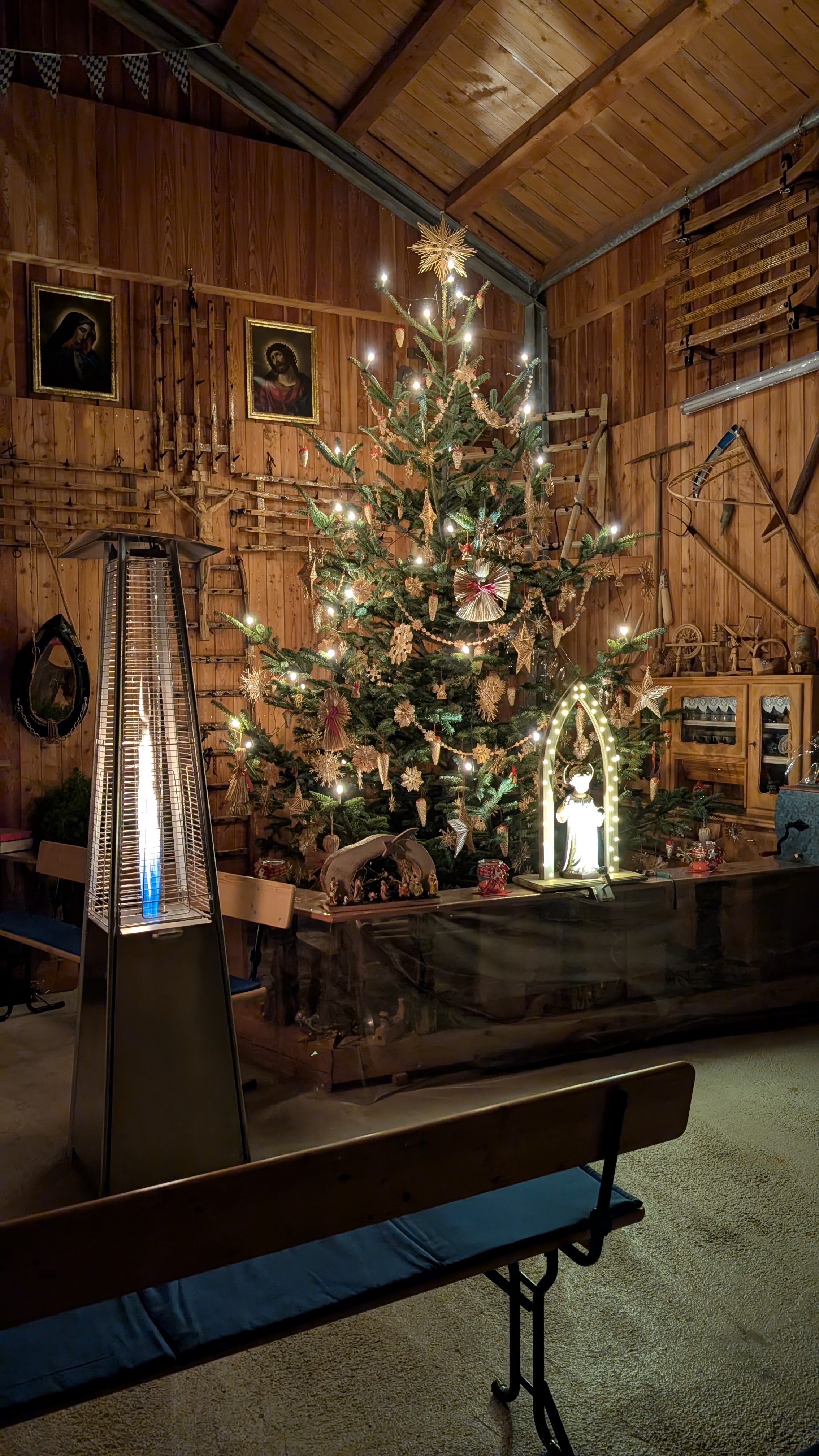 Die Christmette an Heiligabend in der Halle der Familie Bauer war sehr gut besucht. Aufgrund der laufenden Innenrenovierung der Kirche fand die Feier dort statt. Im Mittelpunkt stand die Botschaft von der Geburt Jesu. Die Umgebung sowie die einladende Dekoration des Christbaumes mit Strohsternen stellten einen unmittelbaren Bezug zur Weihnachtsgeschichte her.