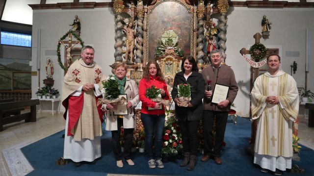 Nachdem im März dieses Jahres neue Pfarrgemeinde gewählt wurden, und sich dabei einige der bisherige Mitglieder des Gremiums nicht mehr zur Wahl gestellt haben, galt es diesen Dank zu sagen und sie zu verabschieden. Zum Ende der Vorabendmesse in der vergangenen Woche wurden die fünf ausgeschiedenen Ratsmitglieder von Pfarrer Dr. Johann Tauer verabschiedet. Dazu überreichte er eine Dankurkunde der Diözese und ein Geschenk der Pfarrei.